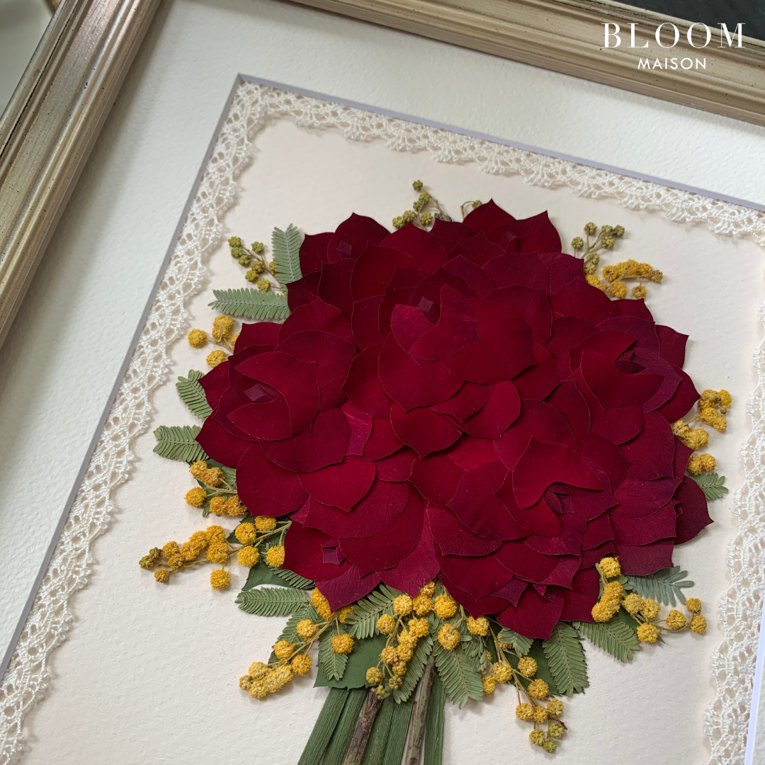 大切なお花を押し花アートにし、一生モノのインテリアとして残すサービスです。