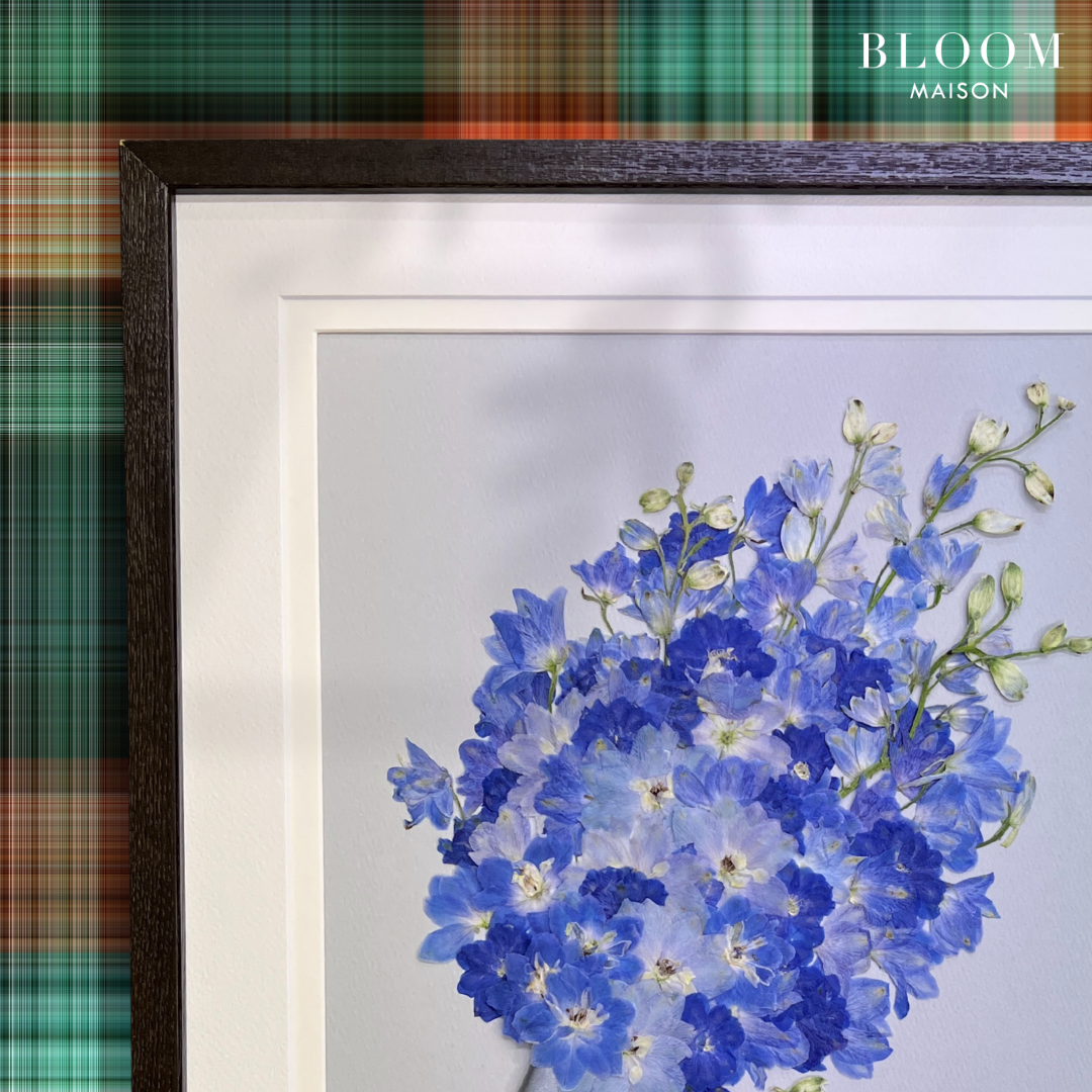 玄関やリビング、ベットルームと、どんなテイストのお部屋にも飾りやすいプレストフラワーアート。