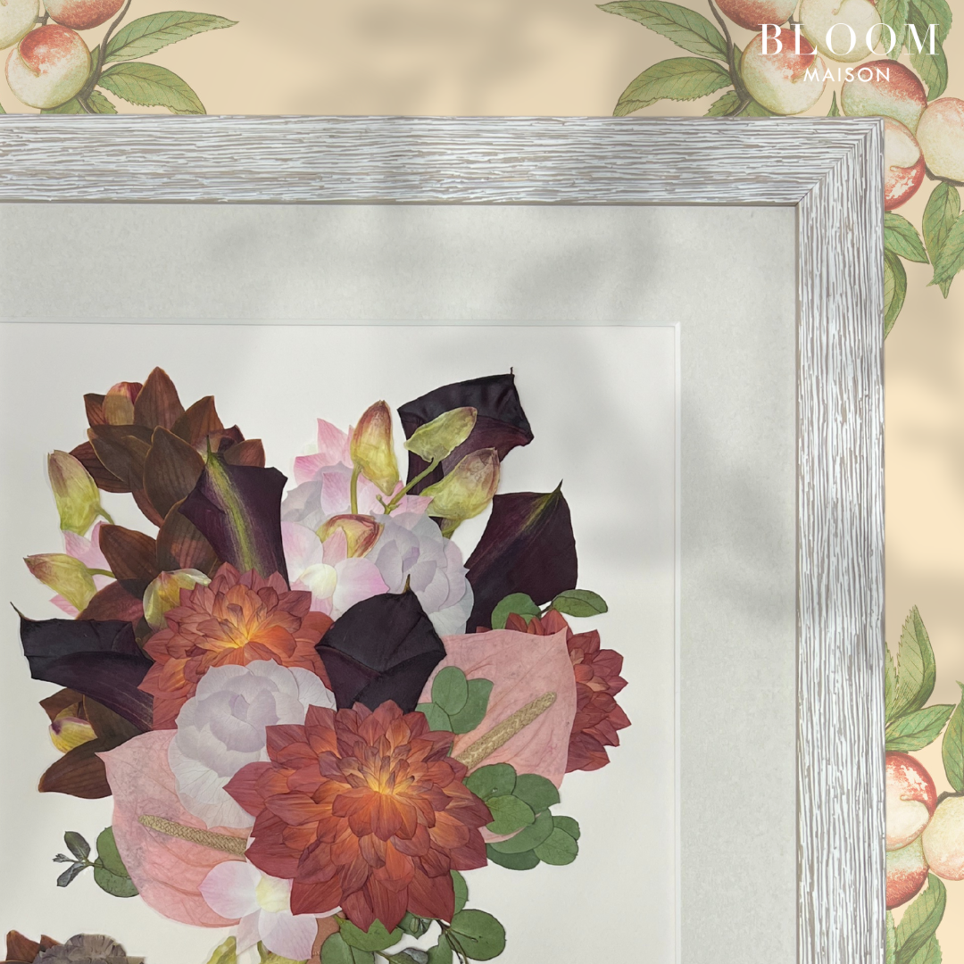 大切なお花を押し花アートにし、一生モノのインテリアとして残すサービスです。