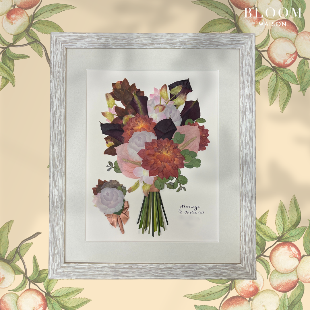 大切なお花を押し花アートにし、一生モノのインテリアとして残すサービスです。