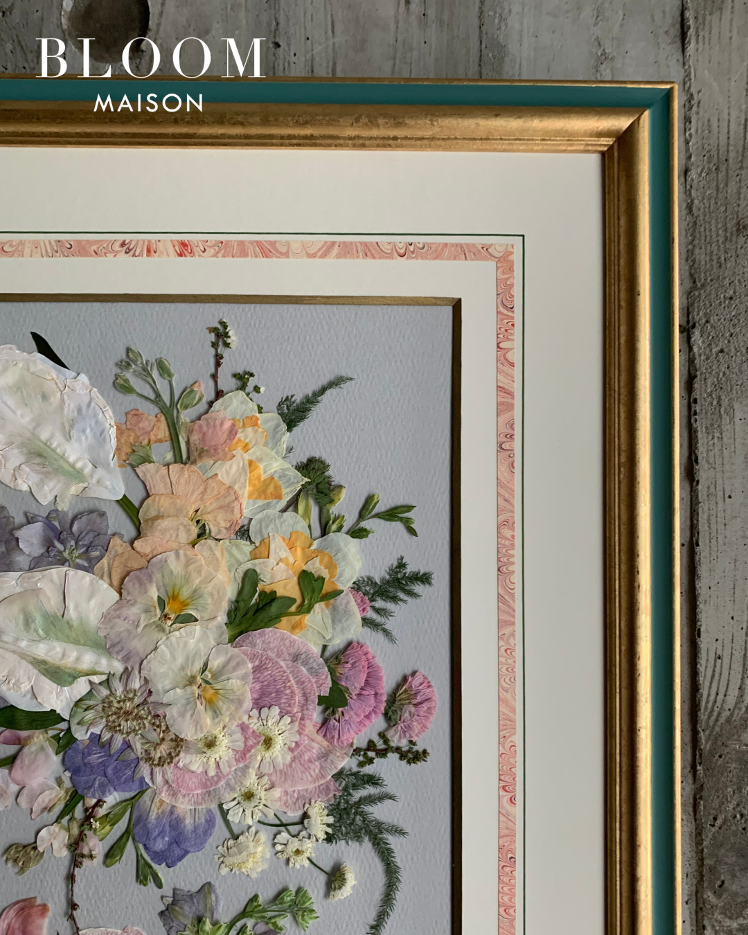 大切なお花を押し花アートにし、一生モノのインテリアとして残すサービスです。