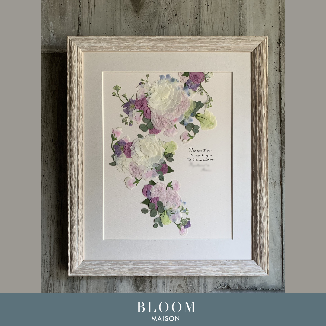 大切なお花を押し花アートにし、一生モノのインテリアとして残すサービスです。