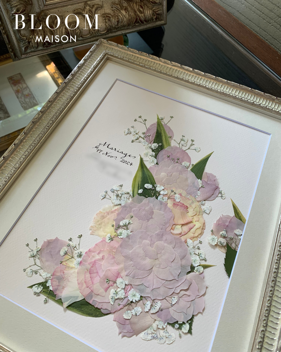大切なお花を押し花アートにし、一生モノのインテリアとして残すサービスです。