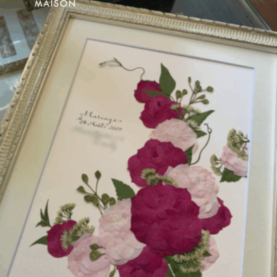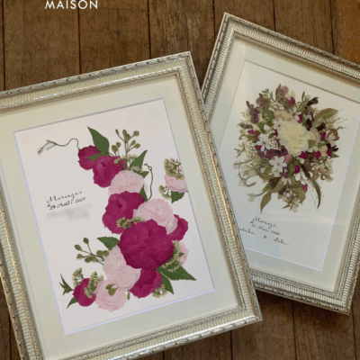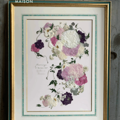 ウエディングブーケや記念日に贈られた花束を押し花アートにして、