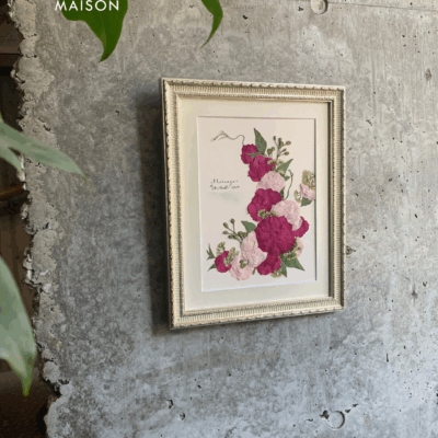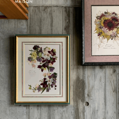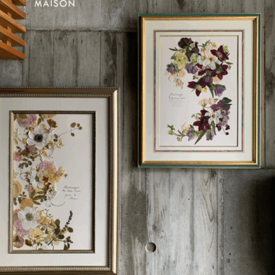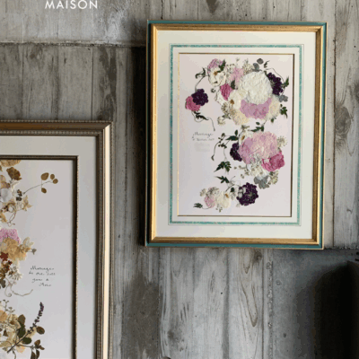 玄関やリビング、ベッドルームと、どんなテイストのお部屋にも飾りやすい押し花アートです。